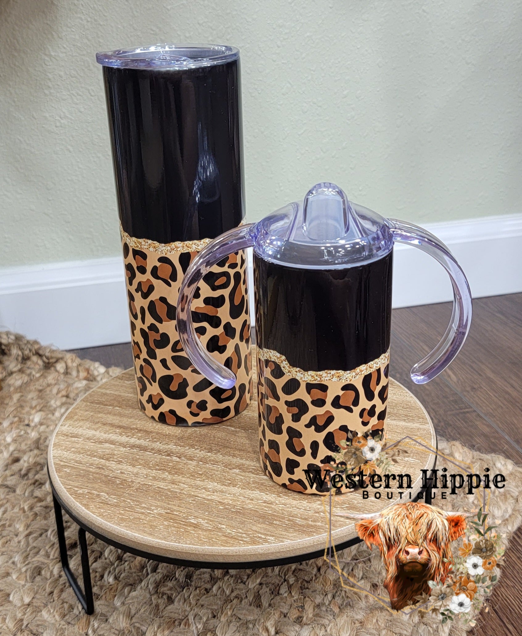 Black leopard mama/mini tumbler set