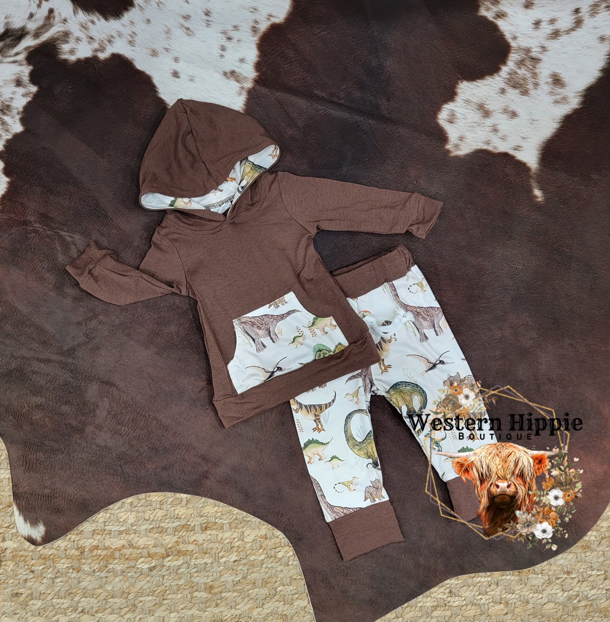 Brown dino hoodie pants set