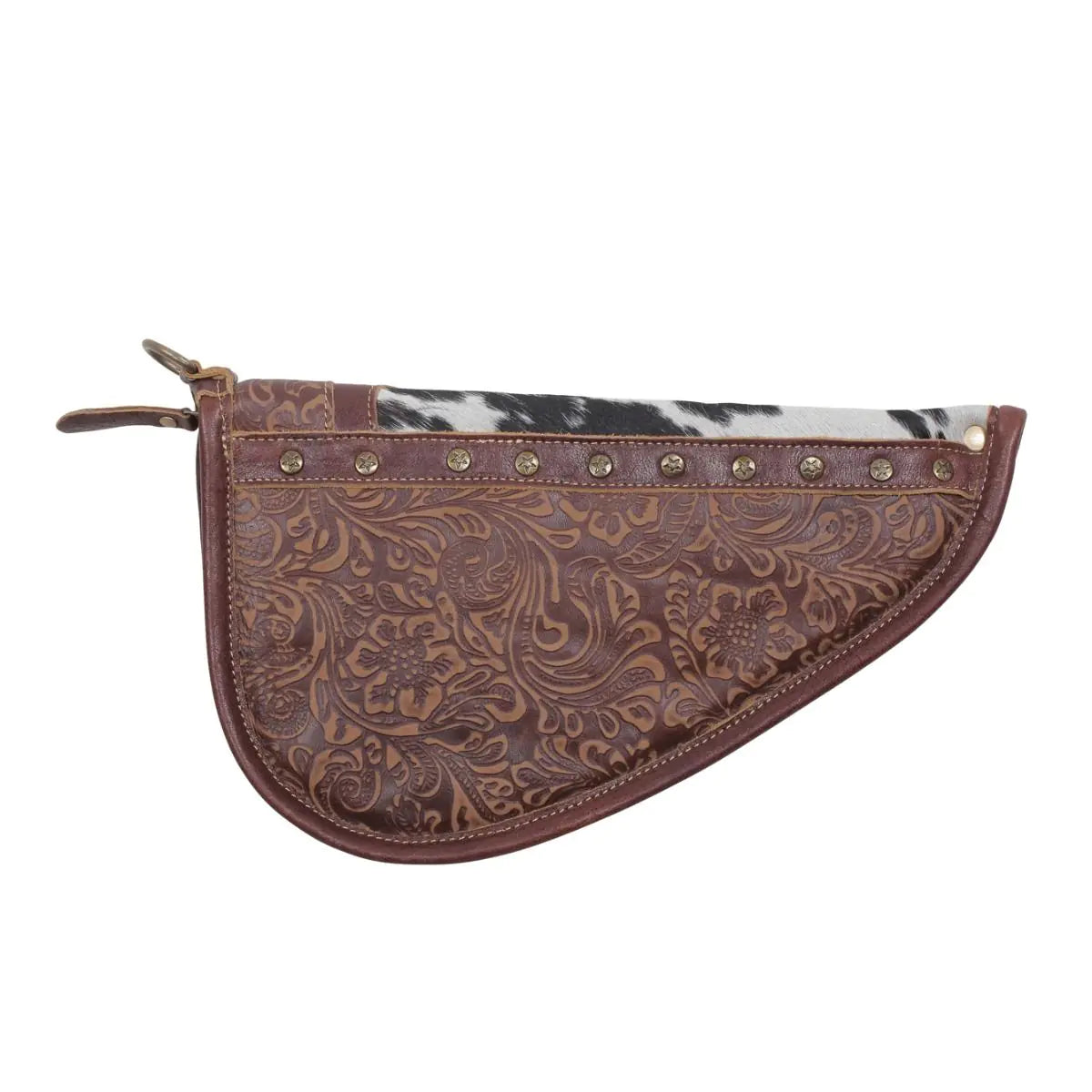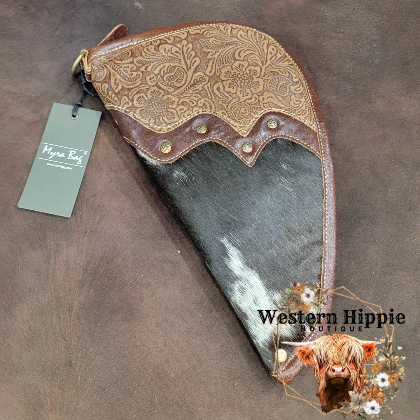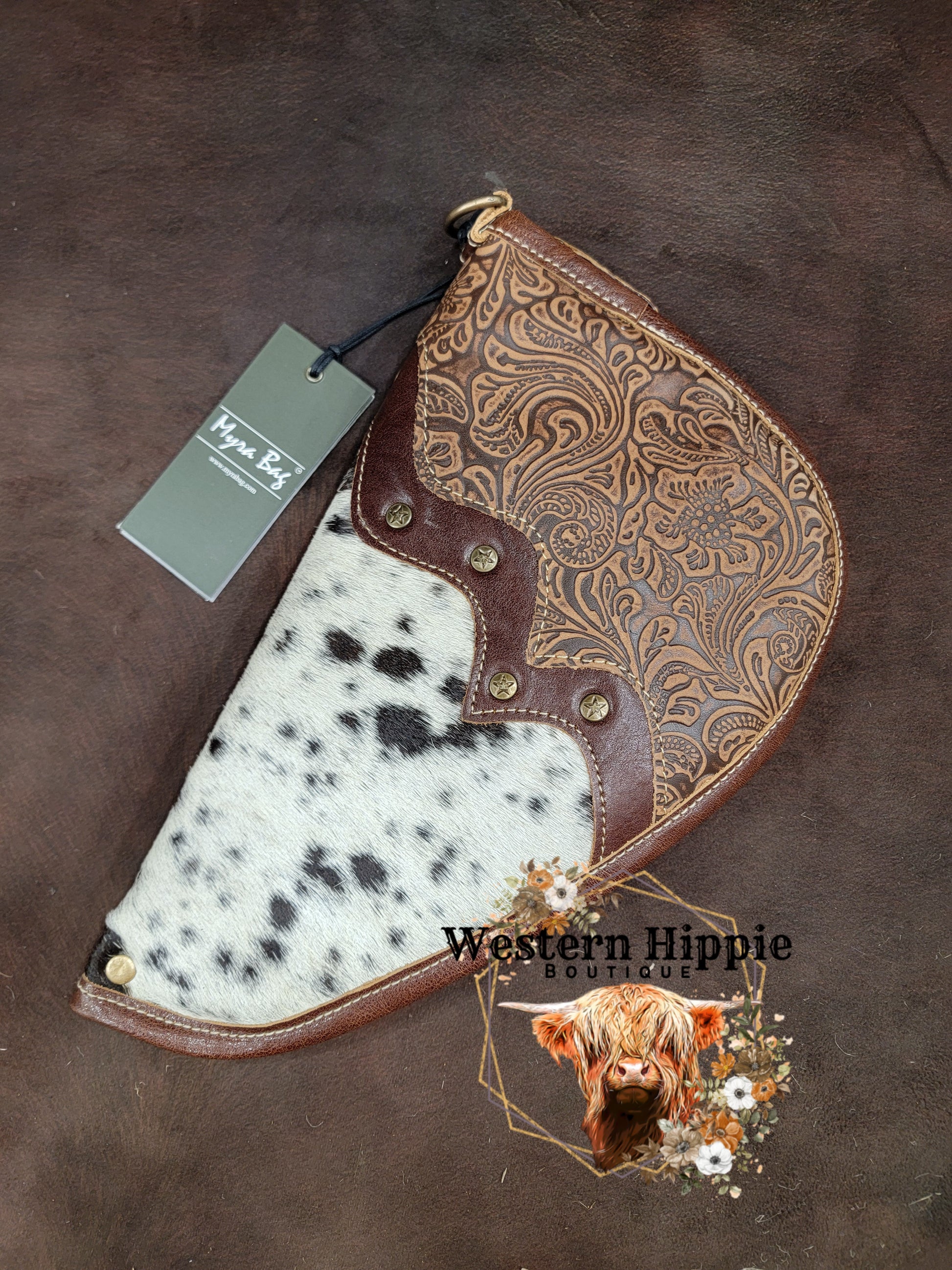 100% real hair on hide and tooled leather. Pattern is subject to change since no two patterns are the same on the cow hide.