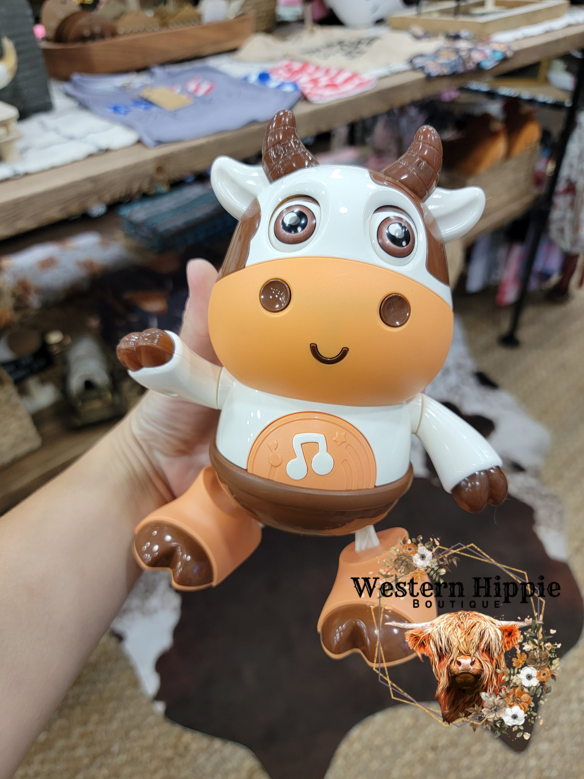 Look at our dancing cow sure has strong "milk-shake" game. Video of him dancing is up on our Facebook page. He requires AA batteries.