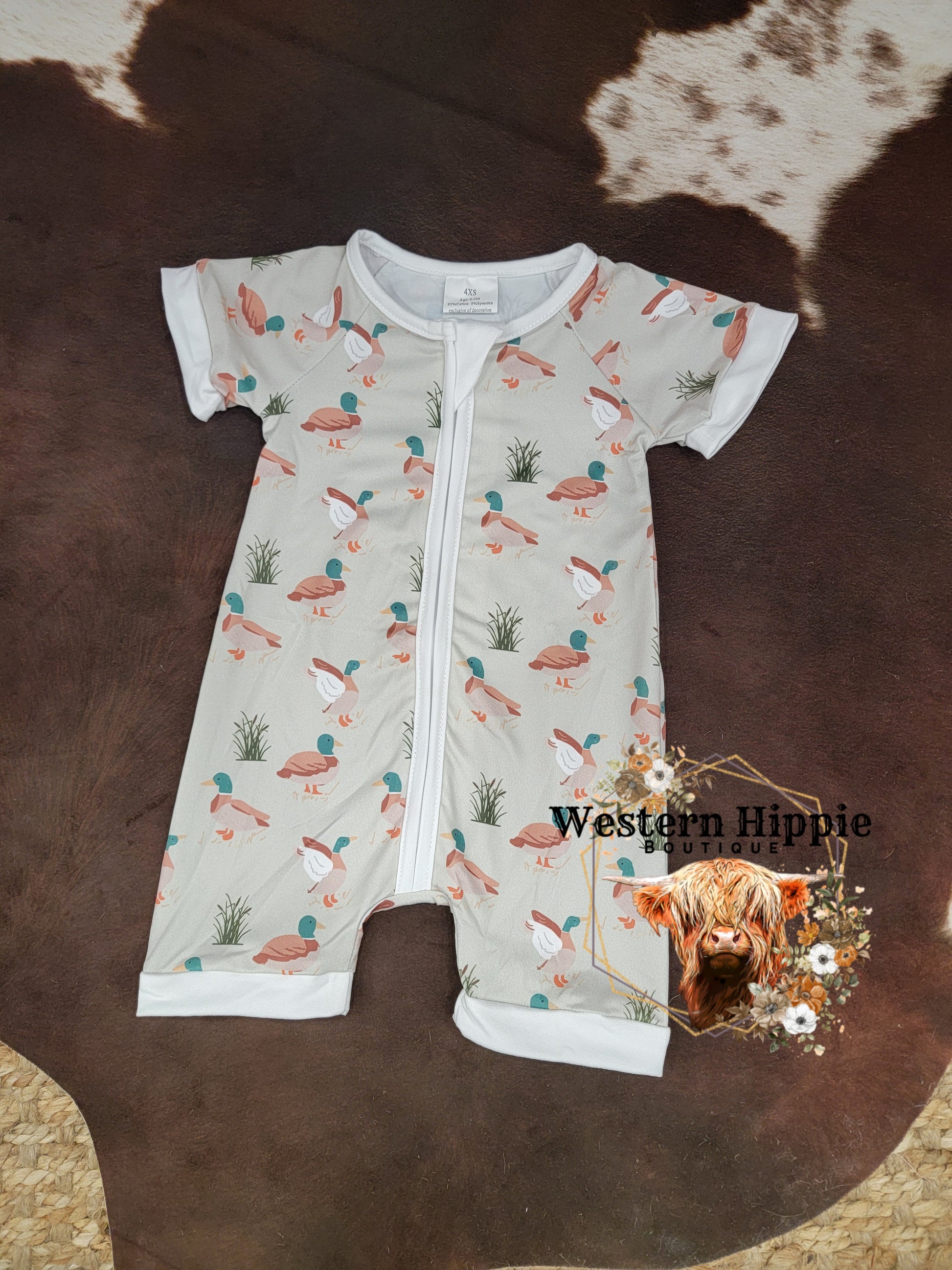 This romper zips and has a zipper guard to protect baby's delicate skin.