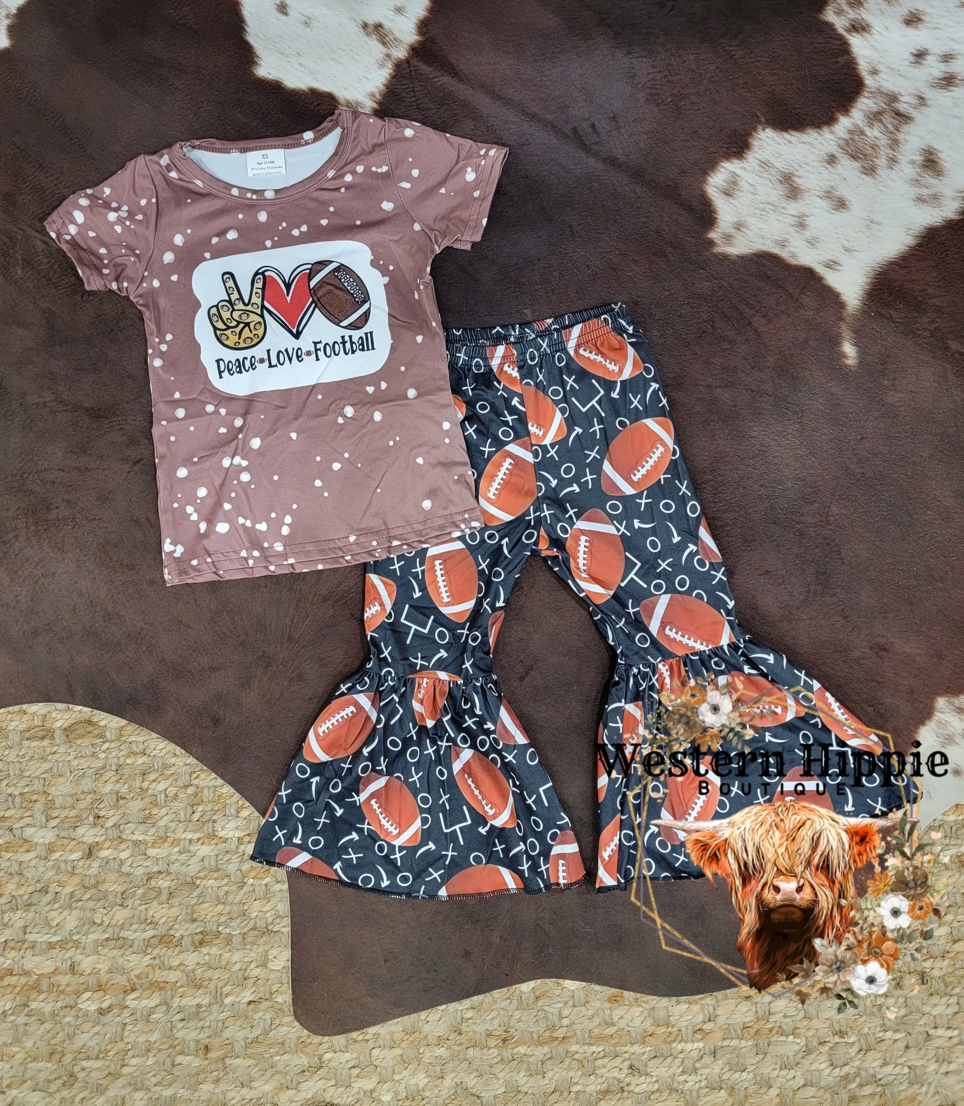 Peace, love, football bell bottom set