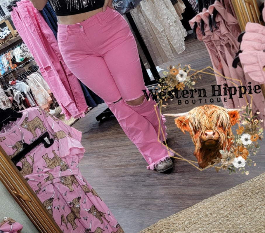 Pink bell bottom jeans