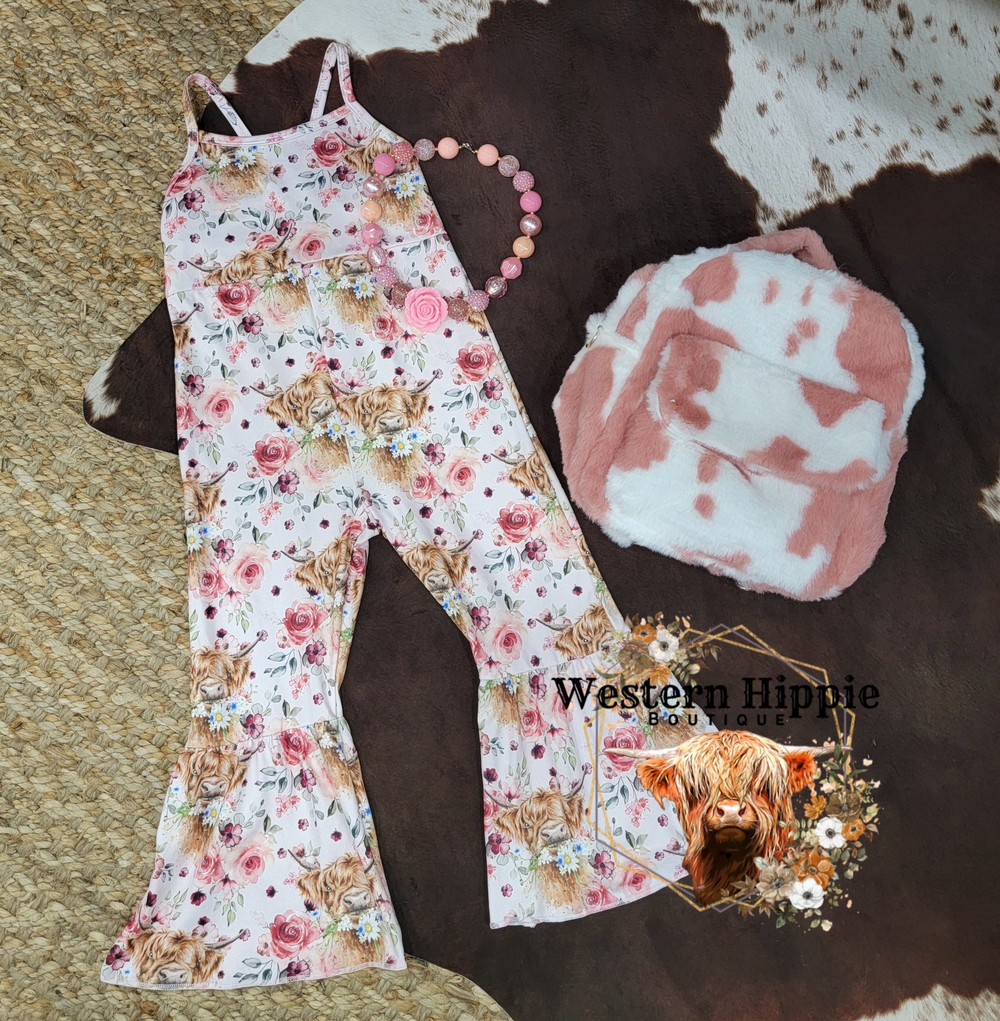 Only bell bottom jumpsuit is included in the price. Sizes 12-18 months and 2T button between the legs.