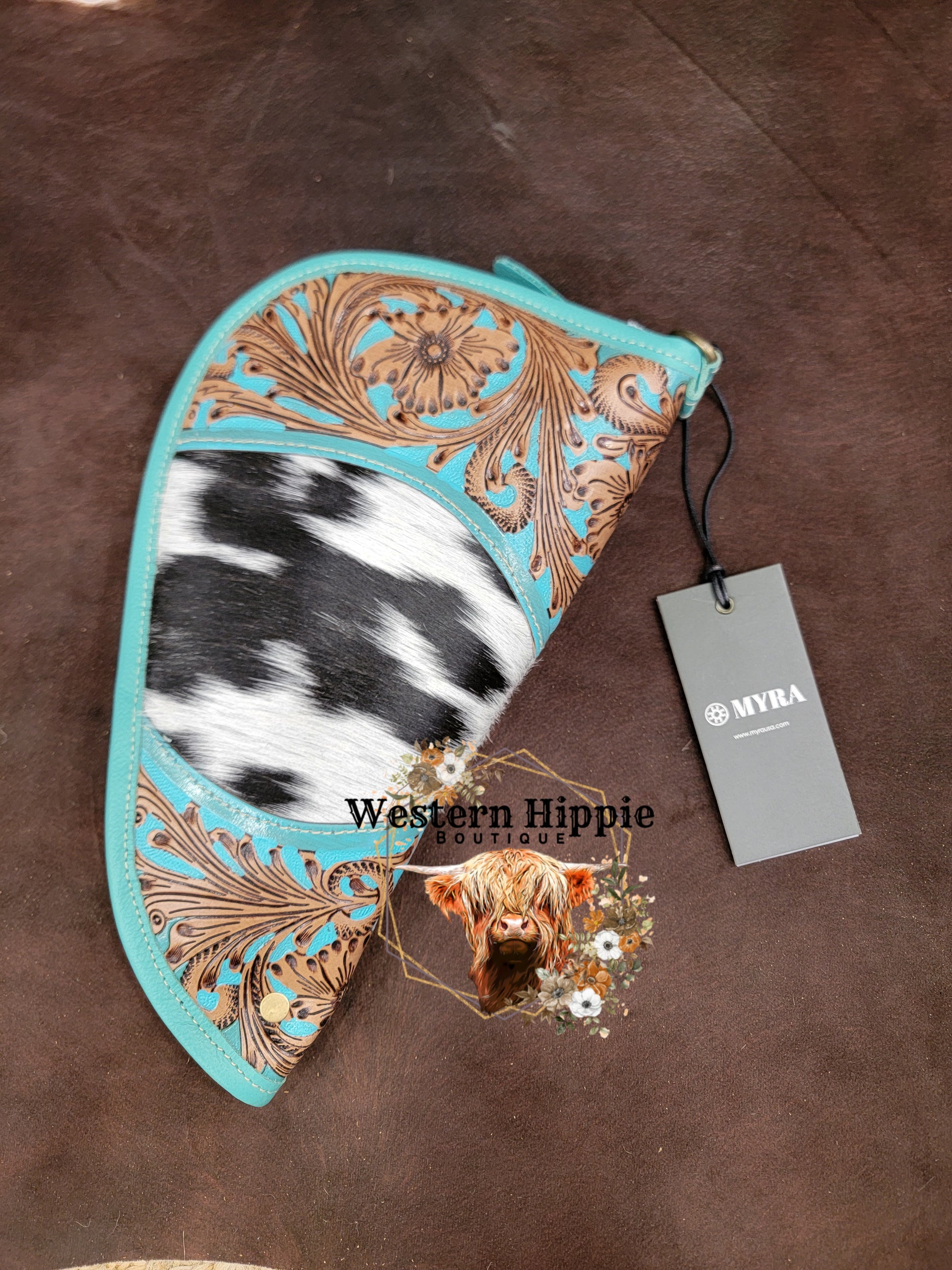 Propel your shooting accessory game with this exquisite gun case. Featuring stunning hair-on hide in classic black and white patterns, accented with masterfully hand-tooled leather in vibrant turquoise. Intricate floral designs and premium craftsmanship make every carry a statement. Wrap-around zipper closure keeps case secure.