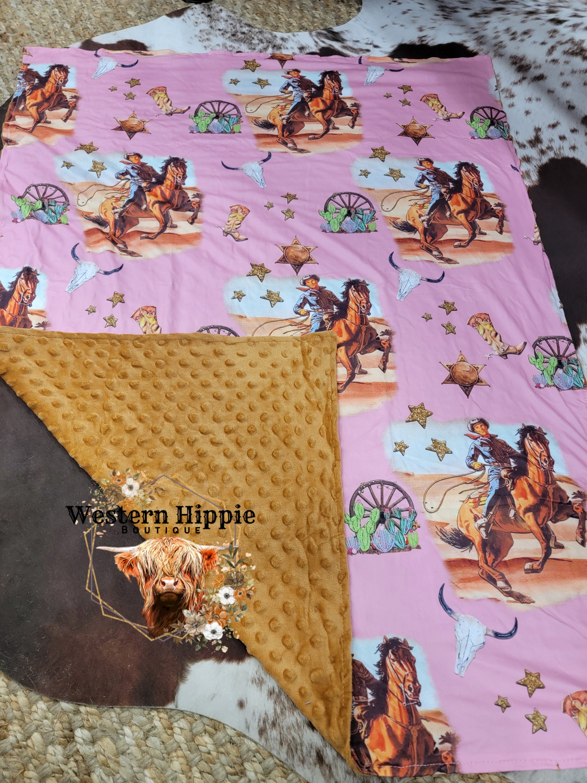 This blanket measures 29x43 inches. The solid brown has a bubble texture and is all over buttery soft.