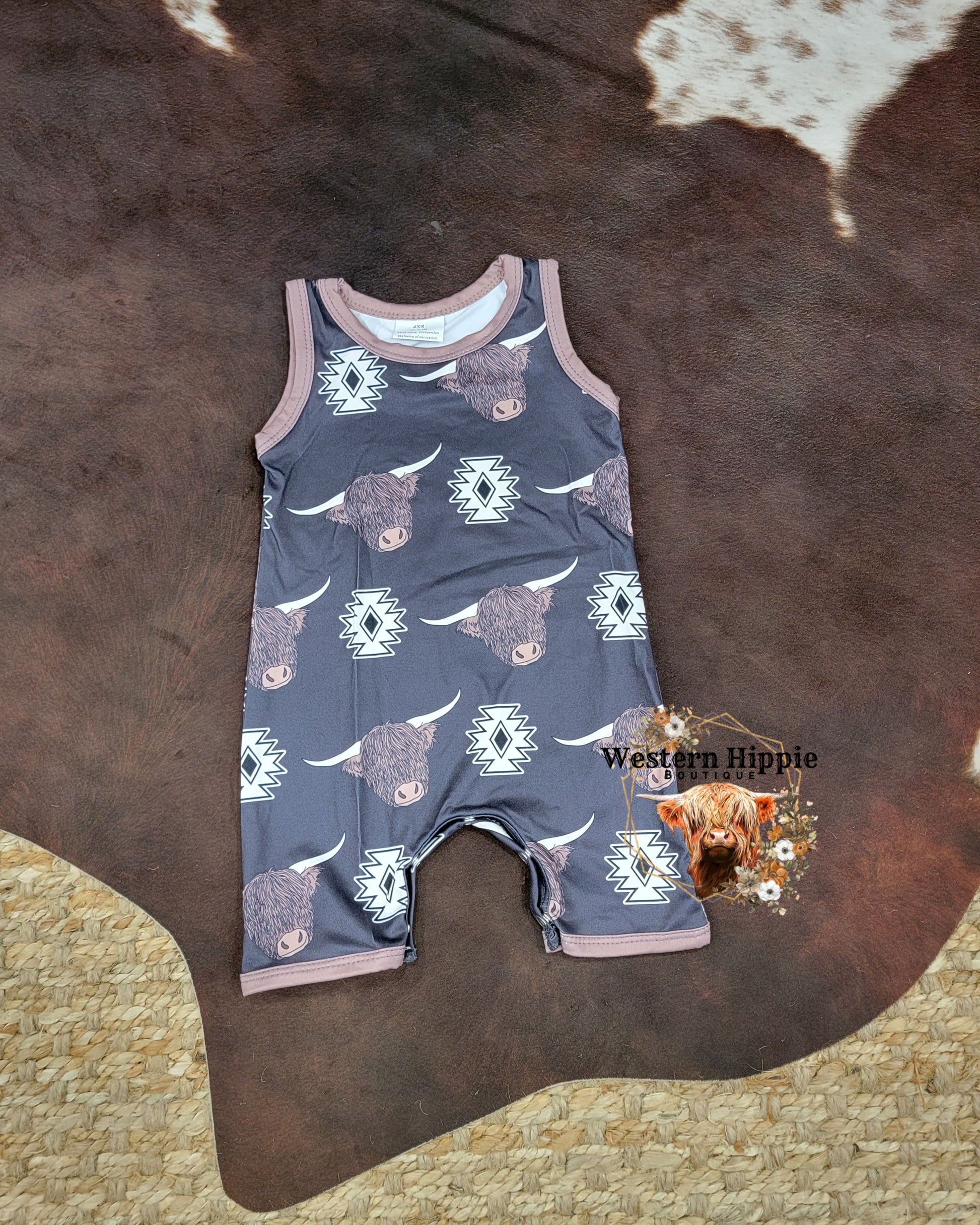 Let little man be stylish and stay cool in the tank style romper. This buttons between the legs.