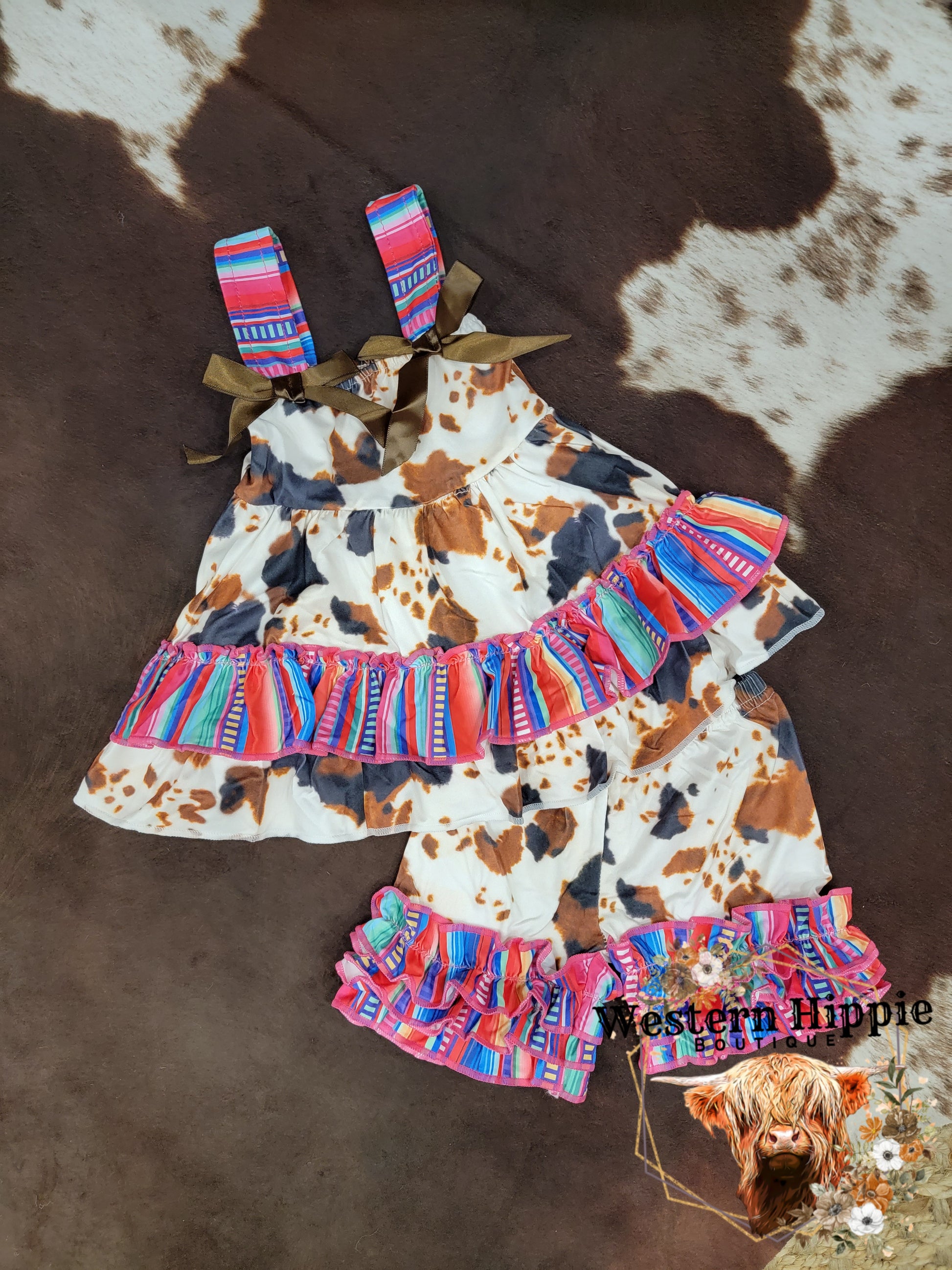 Western ruffle shorts set