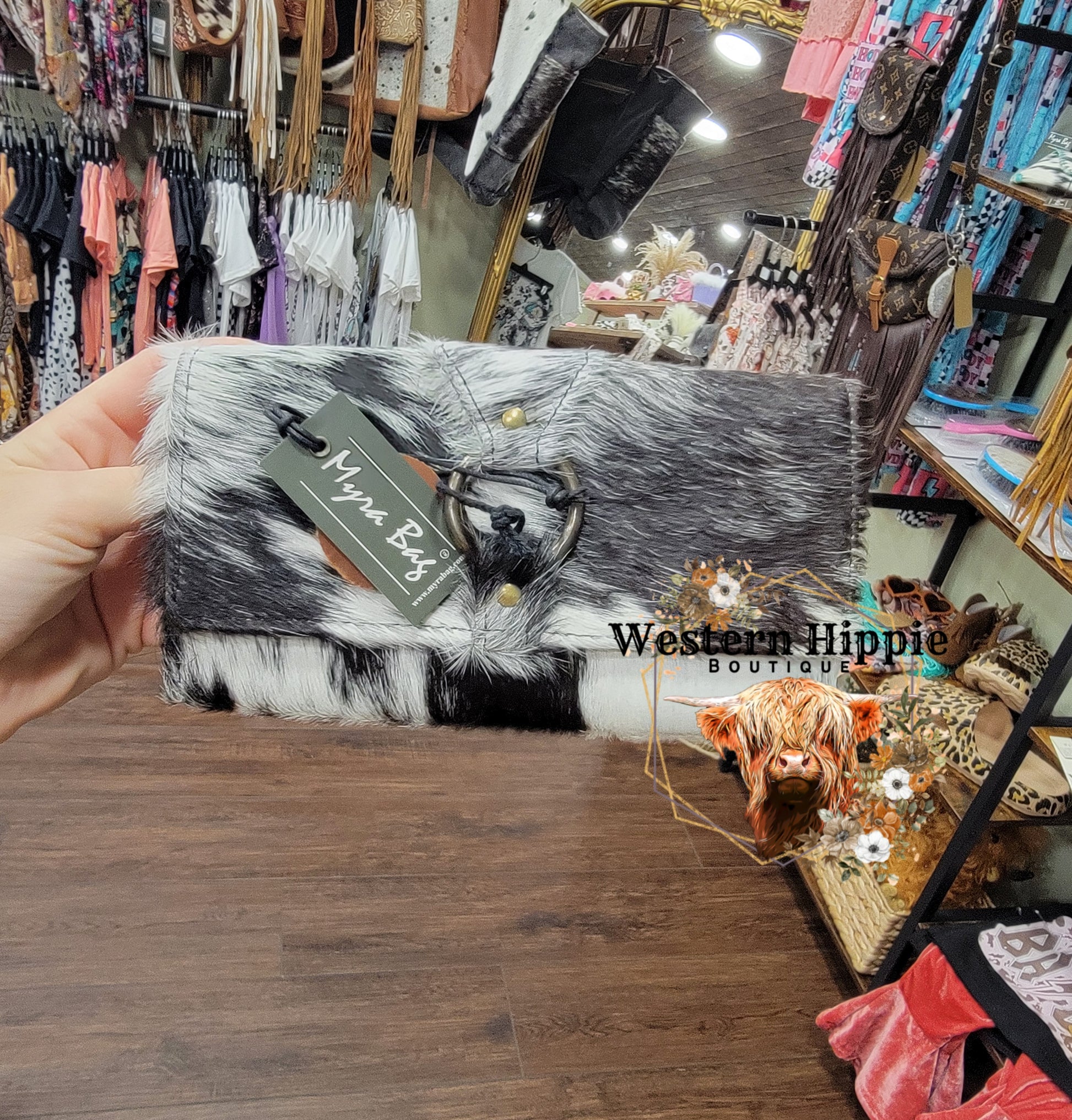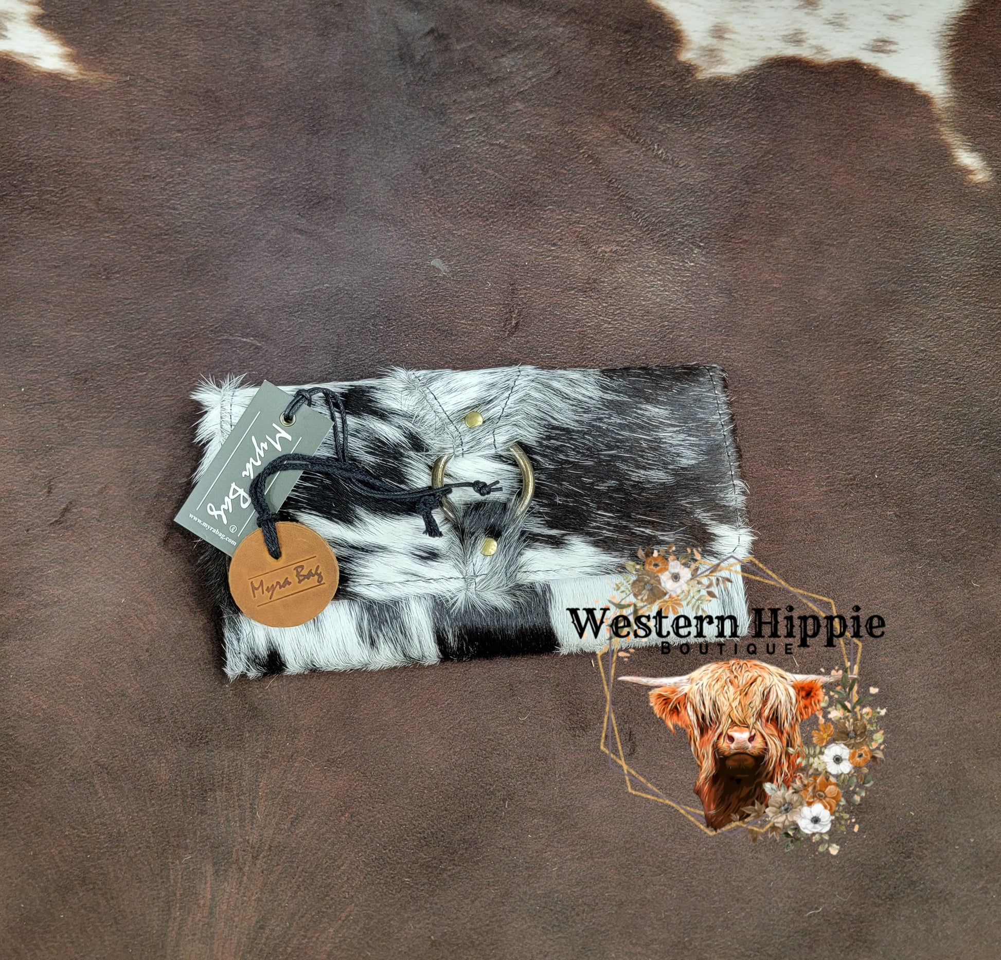 This black and white wallet comes with a front flap design that snaps securely shut and ensures safe storage. It will also provide protection against RFID skimming.