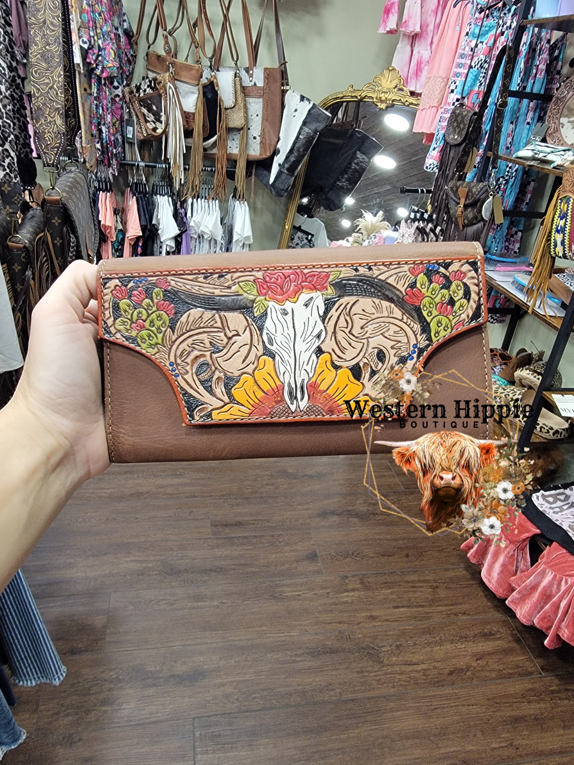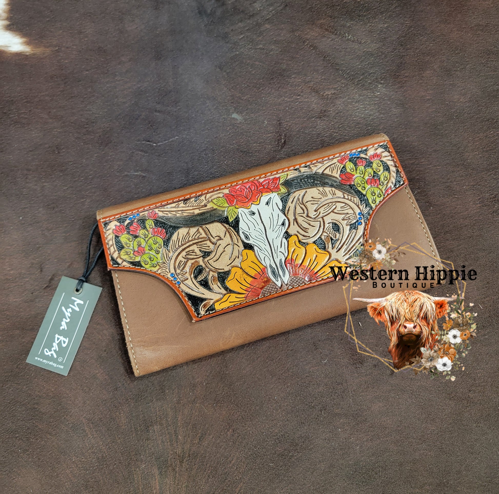 This remarkable wallet features the stunning hallmark image of this series, complete with a vibrant red floral accent. The ample interior has separate sections to keep all your important IDs, cards and cash organized. Flap snaps closed. This beautiful wallet will make for a wonderfully glamorous presentation!